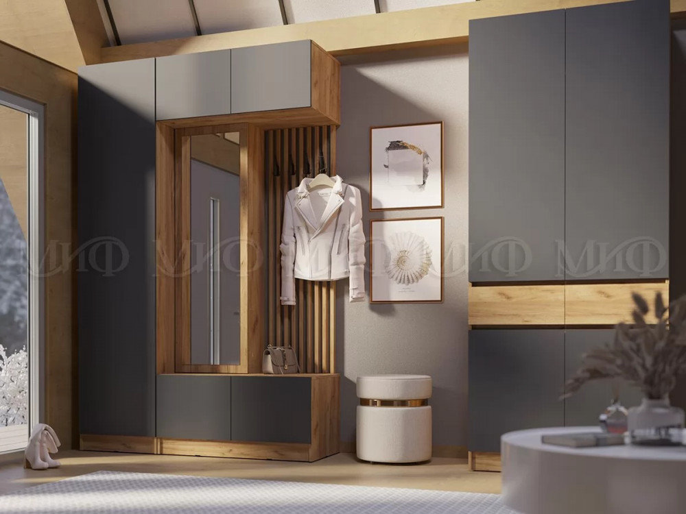 Модульная прихожая Роджинамиф, дуб крафт/графит в Пыть-Яхе