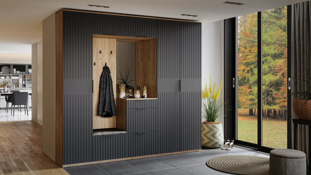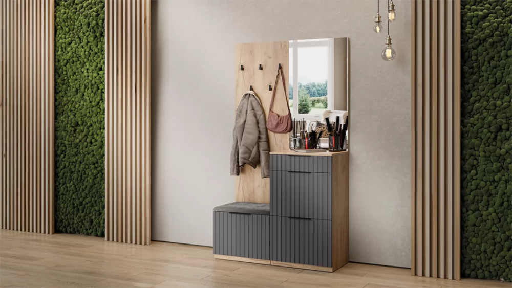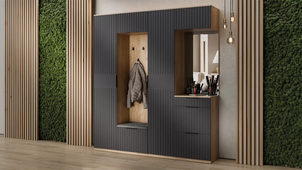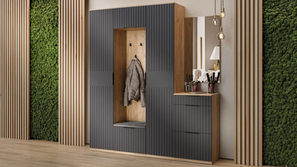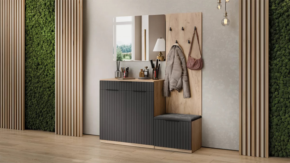 Прихожая «Хилтон» № 2 Дуб Крафт золотой, Графит матовый в Пыть-Яхе