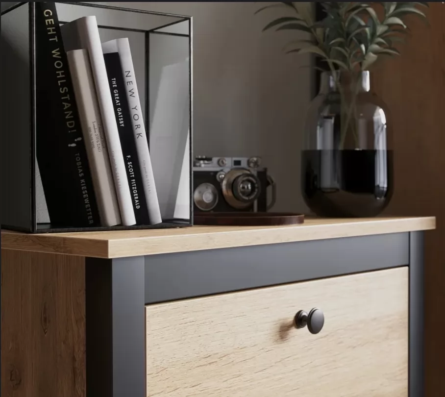Модель выполнена из ЛДСП и проста в уходе. Достаточно протереть поверхность от пыли сухой тканью или слегка влажной тряпкой при устойчивых загрязнениях. Сочетание черного матового и древесного цветов делают этот модуль отличным решением для современных интерьеров.