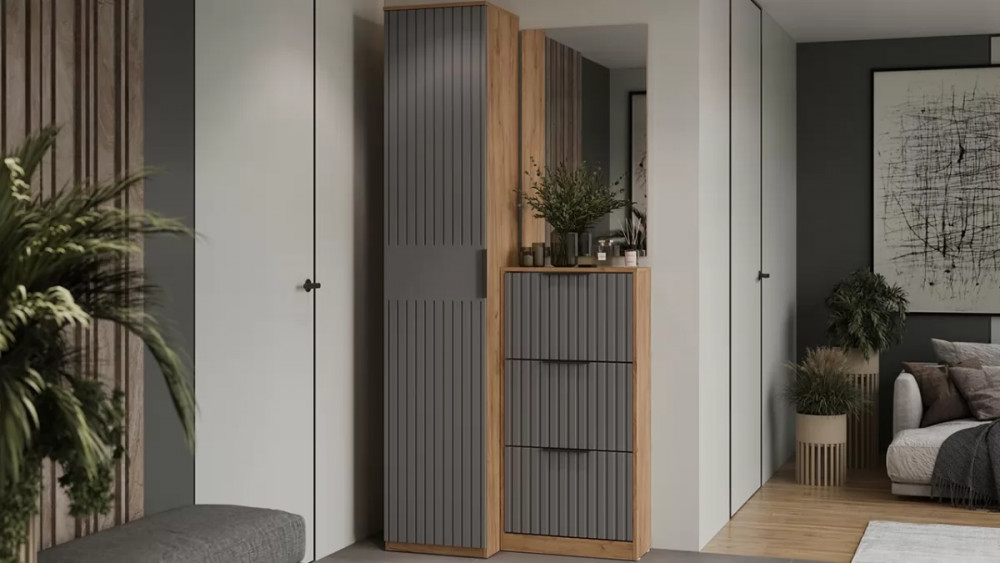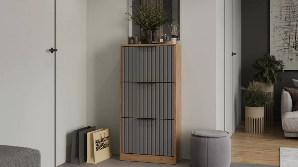 Тумба для обуви «Хилтон» Дуб Крафт золотой, Графит матовый в Пыть-Яхе