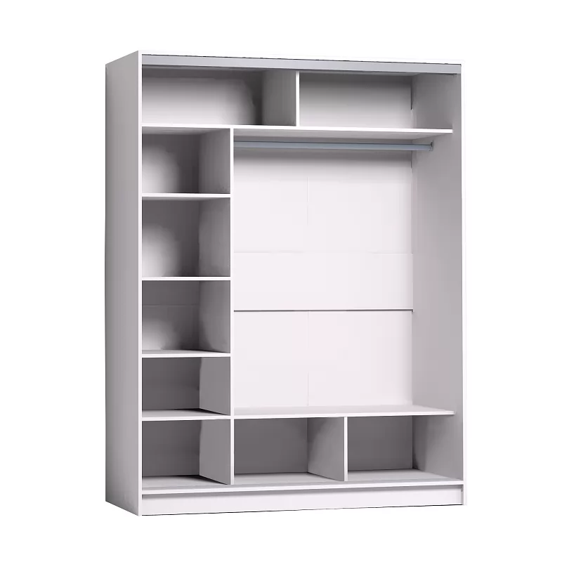 В шкафу-купе шириной 160 см найдется место для гардероба всей семьи. Разместите в нем бельё, верхнюю одежду и аксессуары. Продуманное внутреннее наполнение шкафа состоит из стеллажа для белья, четырех больших ниш внизу и вверху, а также стационарной штанги длиной больше метра. В изготовлении шкафов-купе STRIKE использована прочная стальная система треков «Найди» цвета Металлик. Двери шкафов дополнены ручками из массива и шлегелем, который смягчает удары дверей при закрывании, а также защищают вещи от попадания пыли. Благодаря скрытым полкодержателям полки жестко крепятся на необходимой высоте.