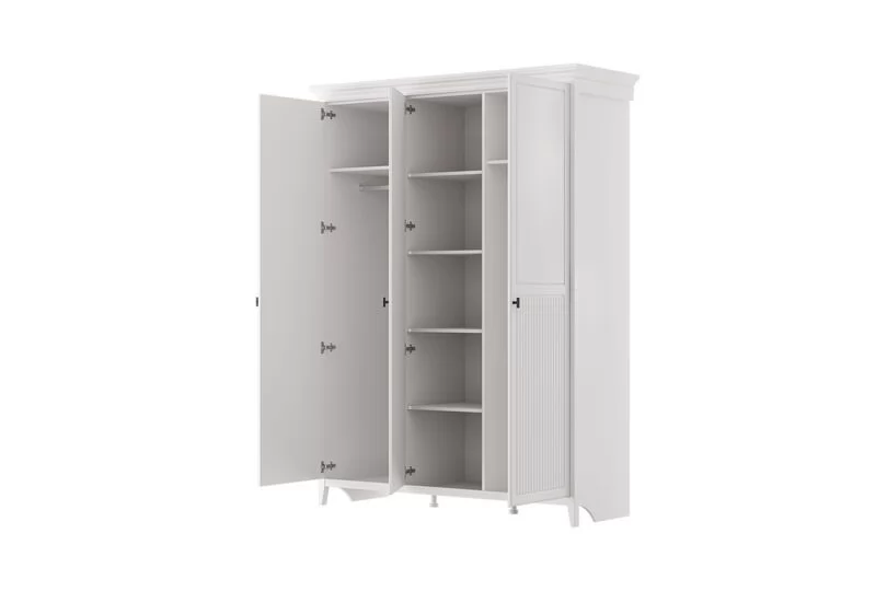 Глубина - 589 мм Ширина - 1660 мм Высота - 2200 мм Срок службы - 7 лет Гарантийный срок - 18 месяцев Монтаж - Требует сборки Модульность изделия - Да Фрезеровка фасада - Да Материал фасада - МДФ Материал корпуса - ЛДСП Материал полок - ЛДСП Материал опоры - Массив Вариант отделки фасада - Лакокрасочное покрытие Количество дверей - 4 шт Фурнитура - Штанга для одежды, Шариковые направляющие полного выдвижения, Петли с доводчиком Цвет корпуса - Белый Цвет фасада - Лак белый