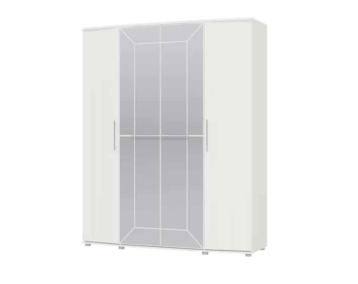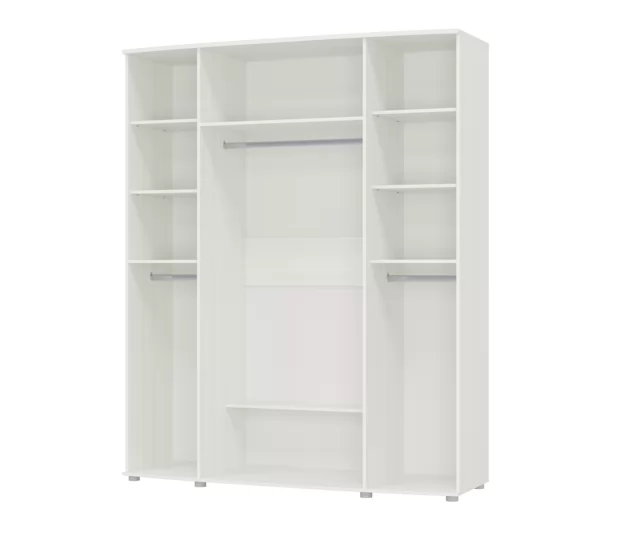В этом шкафу три отдела со штангами: стандартное и два отдела метровой высоты — для хранения блузок и рубашек, брюк и юбок, которые отлично разместятся в этом большом шкафу. Четыре распашных двери обеспечат легкий доступ к вещам.