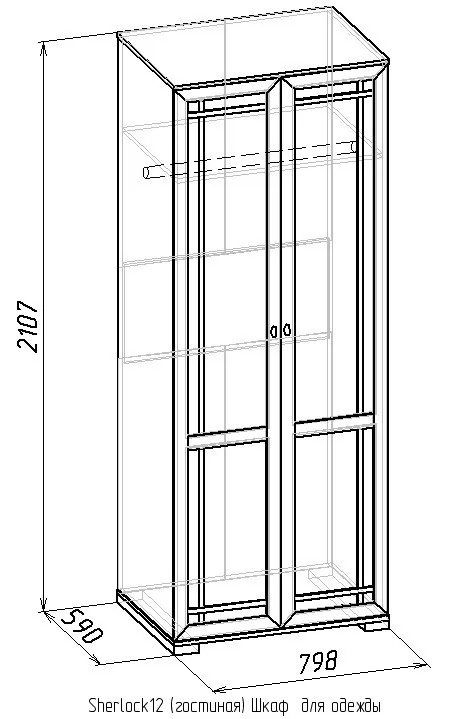 Ширина (мм): 798 Высота (мм): 2107 Глубина (мм): 590 Материал: ЛДСП Цвет: Ясень анкор светлый, Дуб сонома, Орех шоколадный Коллекция: Sherlock