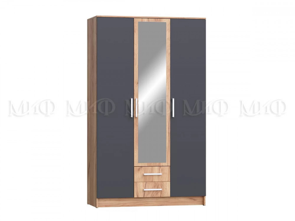 Шкаф для одежды 3-дверный Мартина ЛДСП Графит, Дуб крафт в Пыть-Яхе