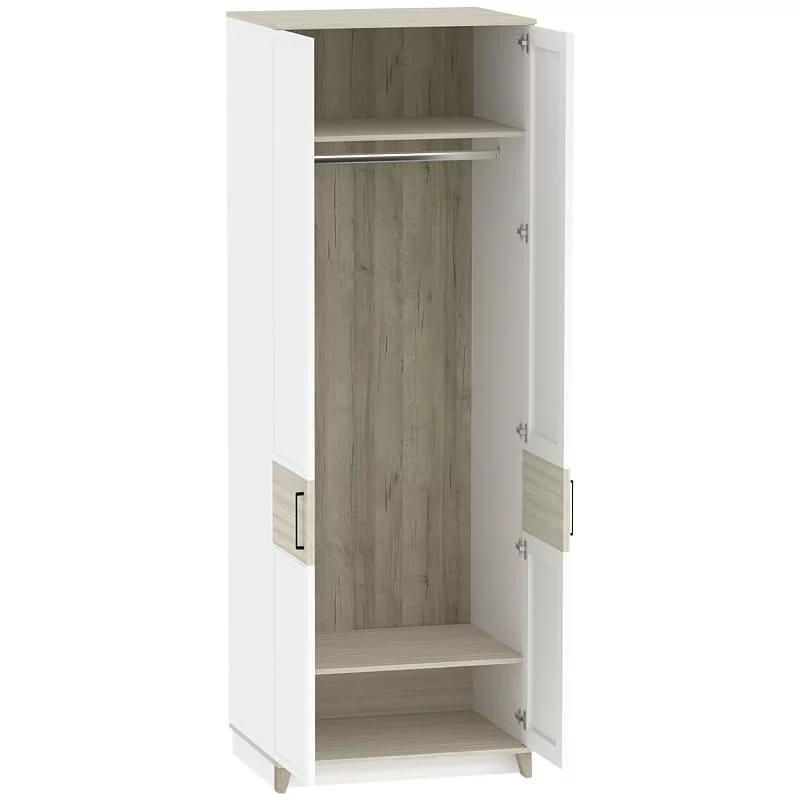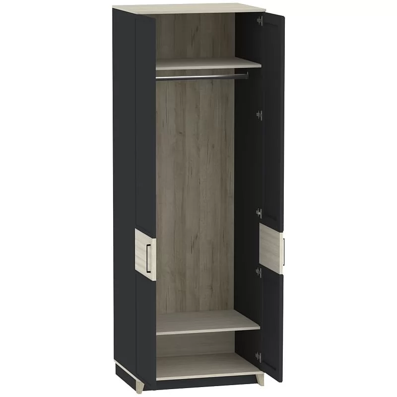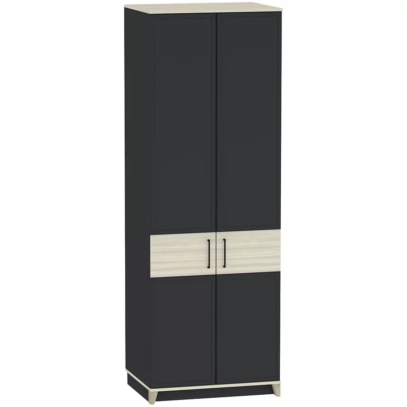 Ширина (мм): 800 Высота (мм): 2308 Глубина(мм): 455 Материал: ЛДСП Цвет: Белый-Блеквуд Сатиновый,Антрацит-Блеквуд Сатиновый Металлические ручки Рамочные фасады из профиля МДФ Стационарная штанга для одежды