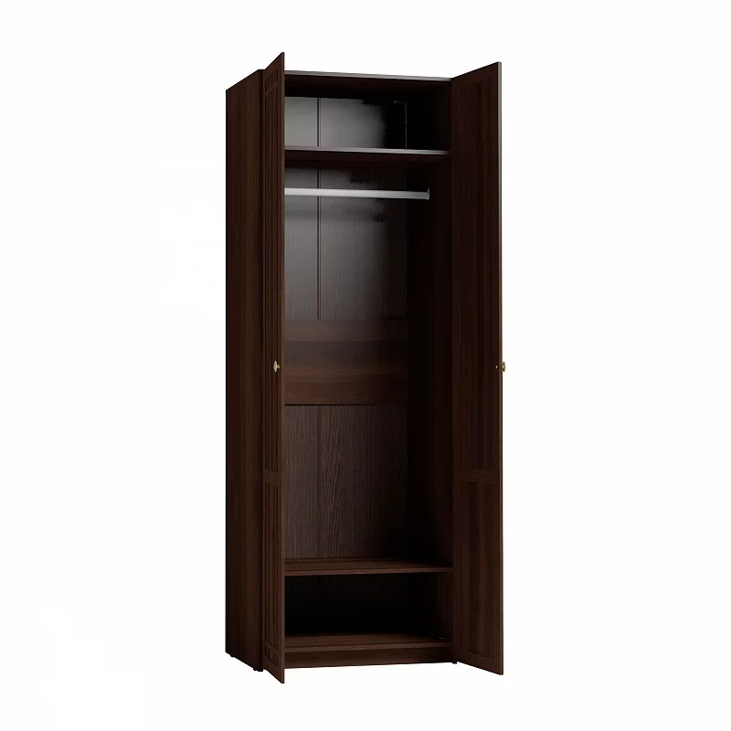 Шкаф с распашными глухими фасадами, декорированными раскладкой из профиля МДФ. Глубина шкафа в 579 мм позволяет комплектовать шкаф стационарной штангой длиной 757 мм. На ней можно разместить более 10 плечиков с верхней одеждой. Нижняя полка размещается на высоте 290 мм от нижнего щита, рационально организуя нижнее свободное пространство шкафа.