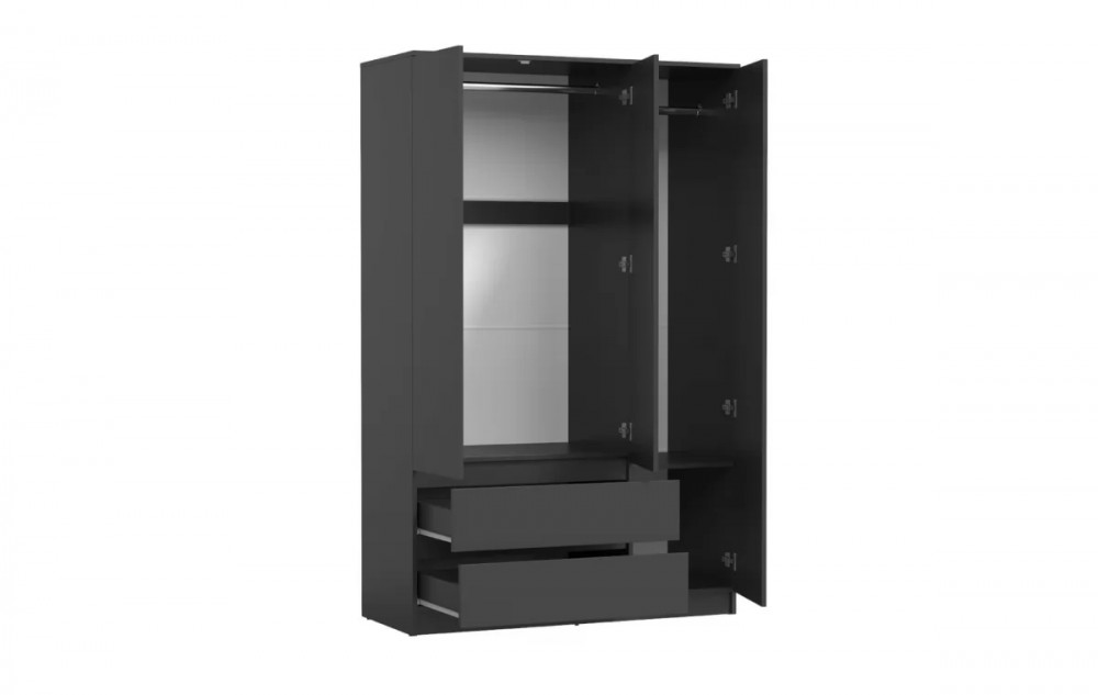 Конструкция позволяет организовать идеальное пространство для хранения вещей: одежда размещается на удобной штанге, мелочи аккуратно располагаются на полках, а аксессуары удобно хранятся в глубоких выдвижных ящиках.