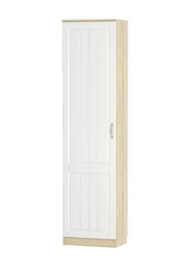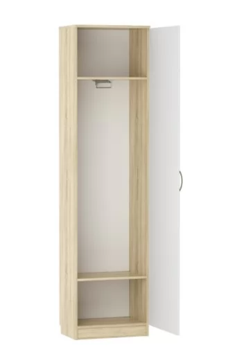 Одностворчатый шкаф Оливия НМ 014.71 Х не займет много места в детской, гостиной, спальне или прихожей. Выдвижная штанга обеспечит быстрый поиск нужного предмета гардероба. На антресольной полке удобно хранить негабаритную сезонную одежду, а нижняя полка лучше всего подойдет для хранения коробок с обувью. Для расширения функционала шкафа можно дополнительно приобрести комплект полок.