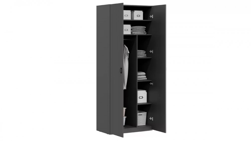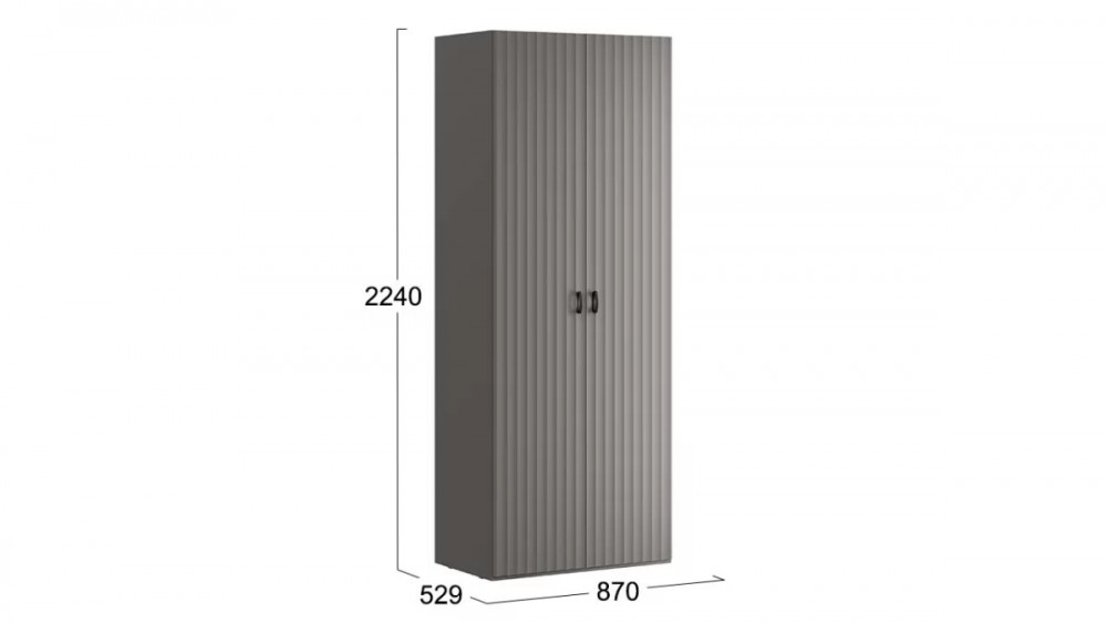 Назначение: Мебель для хранения Количество дверей: 2 Зеркало: Нет Гарантийный срок: 24 месяца Комната использования: Спальня Материал кромки каркаса: ПВХ Цвет ручки: Черный Стиль: Современный Тип шкафа: Шкаф с распашными дверями Тип: Шкаф Расположение: Напольный Материал каркаса: ЛДСП Материал ручек: Металл Производство: Россия Габаритная ширина: 870 Габаритная высота: 2 240 Форма предмета: Прямоугольный Габаритная глубина: 529 Количество полок ЛДСП: 5 Модель: Тиффани Срок службы: 5 лет Материал фасада: МДФ Цвет: Базальт, Грей софт Наличие механизма раскладки: Нет Наличие спального места: Нет