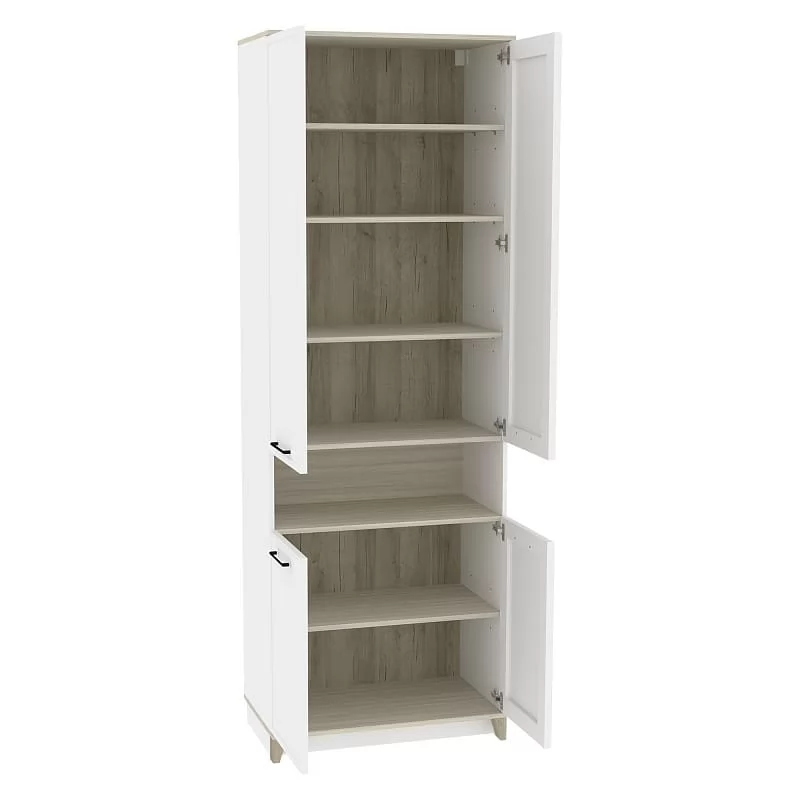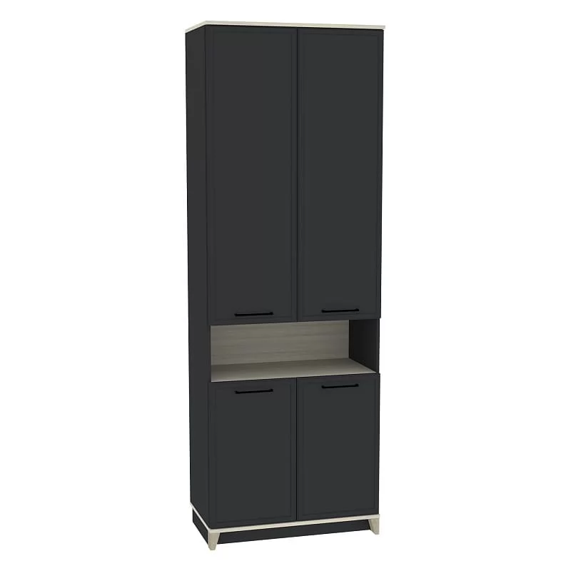 Ширина (мм): 800 Высота (мм): 2308 Глубина(мм): 450 Цвет корпуса: Белый-Блеквуд Сатиновый, Антрацит-Блеквуд Сатиновый Ручка-скоба металлическая (черный матовый) Петли: накладные Полки: регулируемые по высоте нагрузка на полку (кг): до 10 Материал корпуса: ЛДСП Материал фасада / вставок: ЛДСП