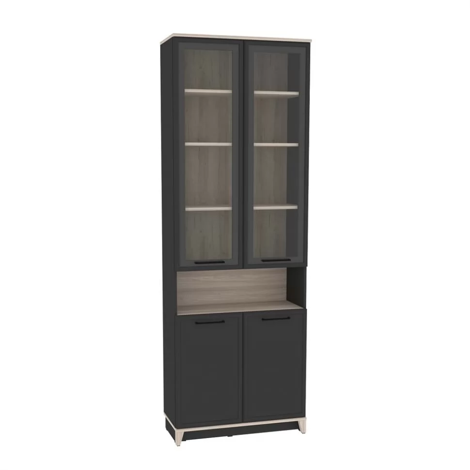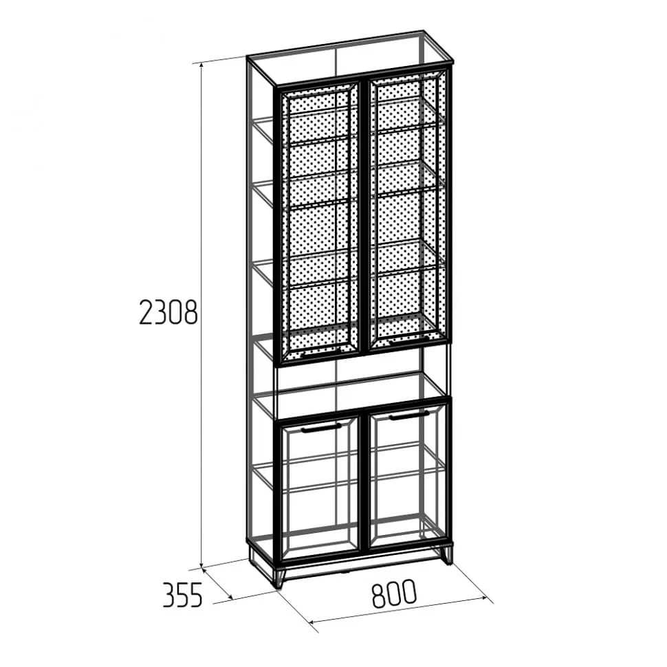 Ширина (мм): 800 Высота (мм): 2308 Глубина(мм): 355 Цвет корпуса: Белый-Блеквуд Сатиновый, Антрацит-Блеквуд Сатиновый Ручка-скоба металлическая (черный матовый) нагрузка на полку (кг): до 10 Материал корпуса: ЛДСП Материал фасада / вставок: ЛДСП