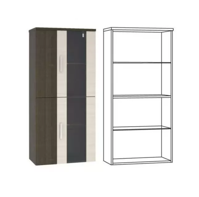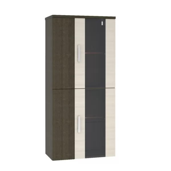 Шкаф навесной"Триада" №862/01 состоит из двух секций с полками за распашными дверцами со стеклянными вставками.