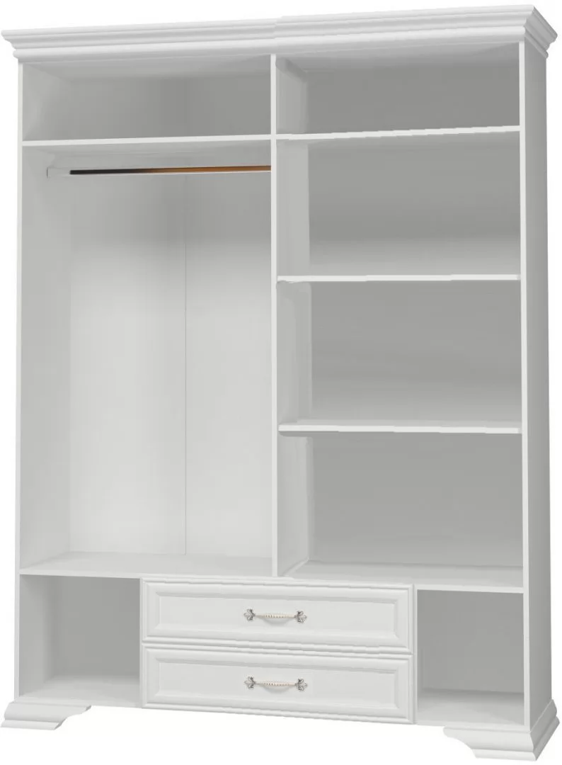 Глубина-550 мм Ширина-1750 мм Высота-2175 мм Срок службы-7 лет Гарантийный срок-18 месяцев Монтаж-Требует сборки Фрезеровка фасада-Да Количество жестких полок-4 шт Материал фасада-ЛДСП 8 мм, МДФ 22 мм, Зеркало Материал корпуса-ЛДСП 16 мм Материал полок-ЛДСП Вариант отделки фасада-Облицованный МДФ профиль Количество дверей-4 шт Фурнитура-Петли с доводчиком, шариковые направляющие полного выдвижения, Штанга для одежды Коллекция-Спальня «Грация» Цвет корпуса-Белый Цвет фасада-Белый глубокие поры, Белый лак Количество вкладных полок-2 шт Количество выдвижных ящиков-2 шт Фасады с древесной или текстурной поверхностью-Да Корпус с древесной или текстурной поверхностью-Нет