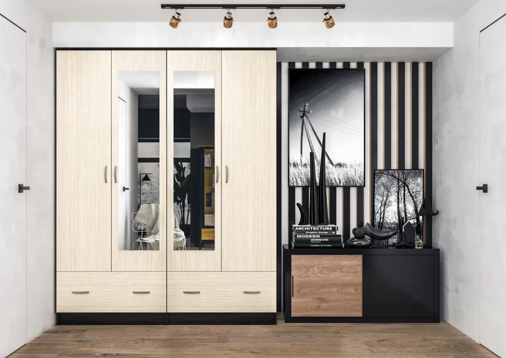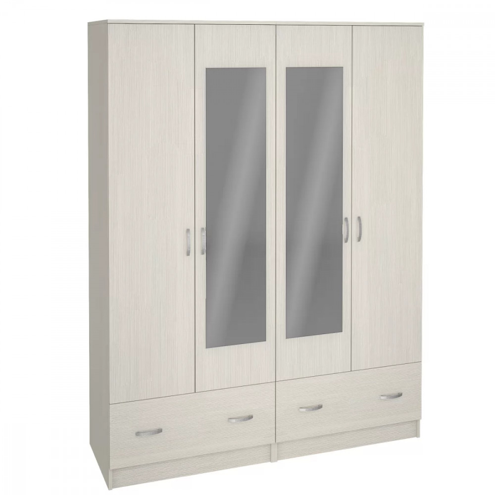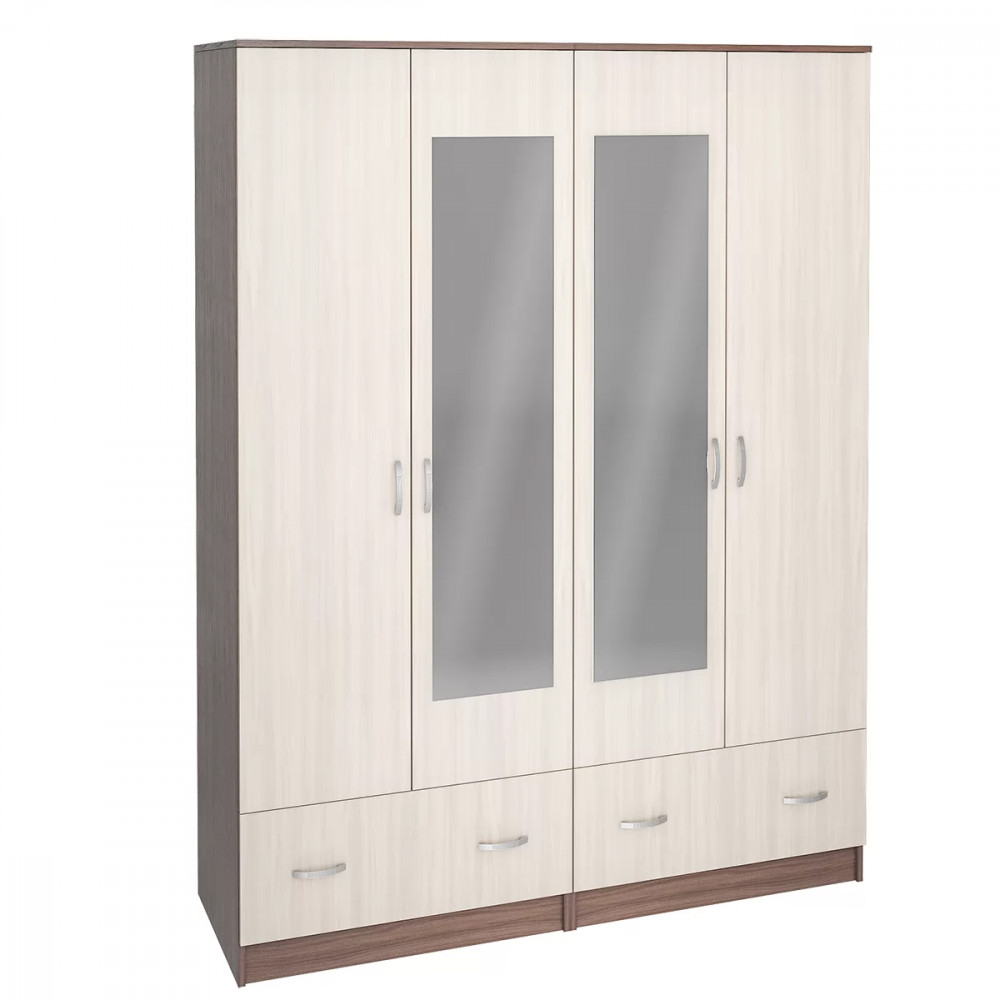 Шкаф ШК-4 станет элементом спальни Ронда или дополнит самостоятельный интерьер - Модель состоит из двух двустворчатых шкафов - Ручка пластик - Шкаф комплектуется горизонтальной штангой - Выдвижные ящики на роликовых направляющих - Зеркало 4 мм