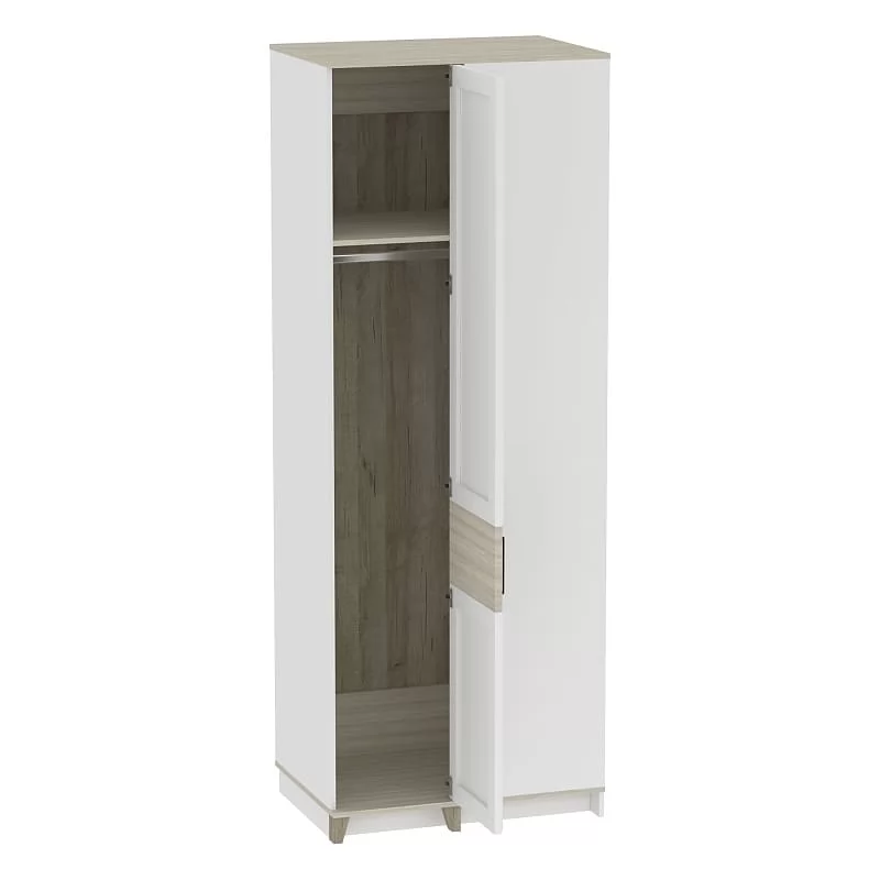 Изысканность стиля подчеркивает тонкий фигурный профиль на фасадах, верх и низ модулей выполнены в древесном декоре, а скошенные опоры из МДФ добавляют мебели в стиле неоклассика из коллекции AURELIO нотку современной эстетики. Петли с доводчиками - для комфортного открывания / закрывания дверок шкафа. Задняя стенка шкафа в древесном декоре устанавливается в паз, поэтому выглядит аккуратно со всех сторон.
