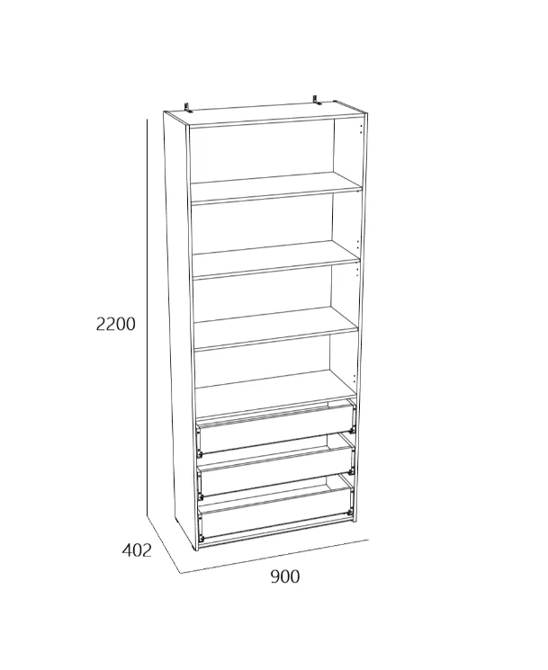 Размеры (ШхГхВ), мм: 900х402х2200