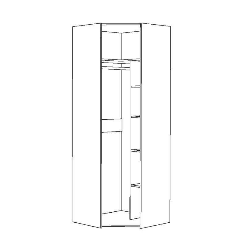 Угловой шкаф для одежды "Амели" комплектуется штангой, широкой антресольной полкой и боковой секцией с 4 полками.