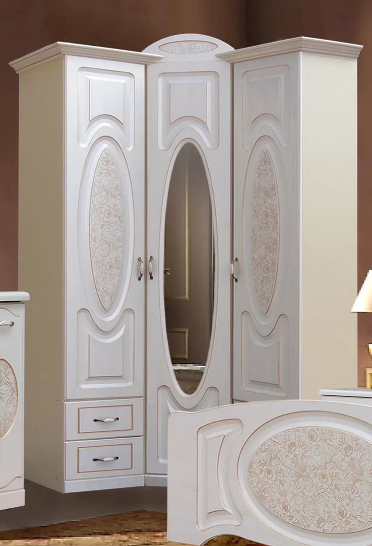 Цвет:бежевый/текстура белая с патиной золото, итальянский орех/груша с патиной черной