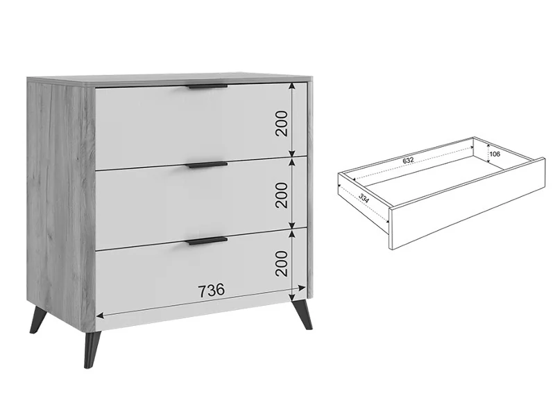 Состоит из: 3-х ящиков.