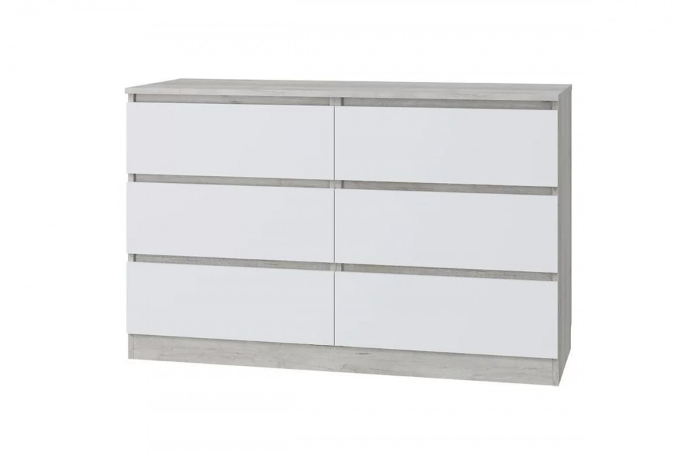 Комод Лори, 6 ящиков, 1202 мм, дуб серый/белый в Пыть-Яхе