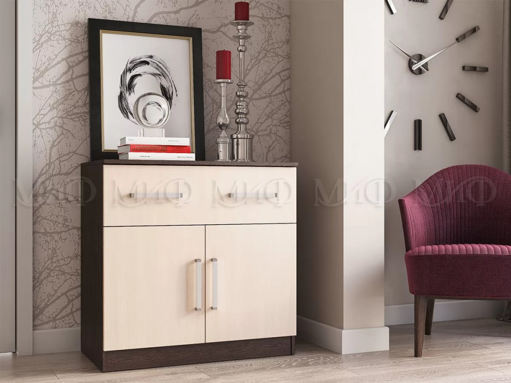 Комод с ящиком 2-мя дверьми Басямиф, дуб беленый/венге в Пыть-Яхе