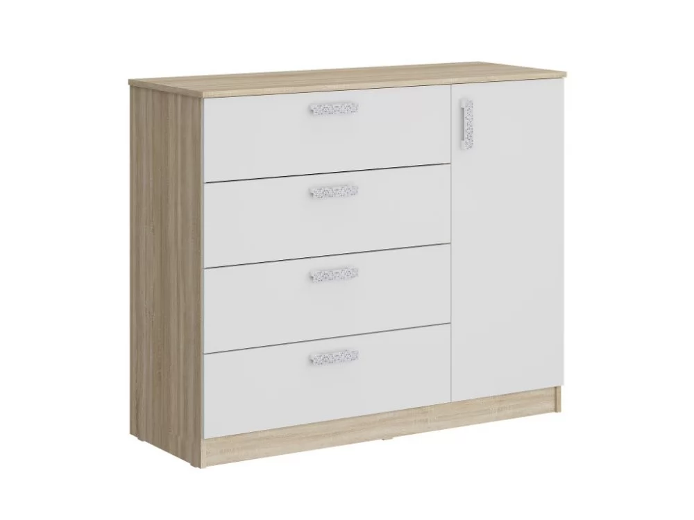 За счет дополнительного отсека с распашной дверкой функциональность комода расширена - можно разместить что-то более крупное.