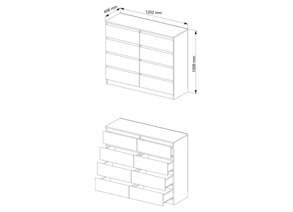 МОРИ МК1200.8 Комод с 8 ящ. (ш1204*г404*в990мм), ЛДСП Белый (МП/3) в Пыть-Яхе