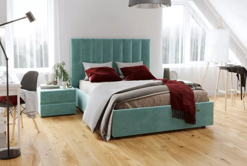 Кровать «Ingrid»  подойдет для современных интерьеров спален, впишется в стиль ретро и скандинавский минимализм. Обивка будет отлично сочетаться с любыми цветовыми оттенками отделки и мебели. Кровати выполнены в нейтральных и ярких тканях велюр, что позволяет подобрать подходящий вариант почти под любой интерьер. Изголовье имеет прямоугольную форму, повторяя очертания кровати. Дизайн модели отличается высоким изголовьем с вертикальными строчками и углублениями.