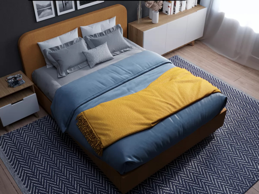 Дизайн кровати демонстрирует лаконичные формы и сбалансированные объемы. Отсутствие декорирования и мягкое изголовье позволяют кровати выглядеть современно. Царга здесь гармонично поддерживается скругленным контуром изголовья, а отсутствие стежки и простота форм позволяют создать единый законченный образ кровати. Мягкие царги и углы у изножья уберегут от травм и сделают спальню уютнее.Высокие ножки и просвет над полом облегчат уборку.