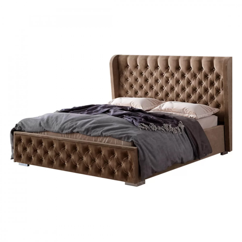 -корпус изделия выполнен из ЛДСП высокого качества, -в дизайне модели используется велюр приятного цвета графит, -высокое мягкое изголовье имеет декоративную стяжку с пуговицами, такой прием придает кровати элегантности.