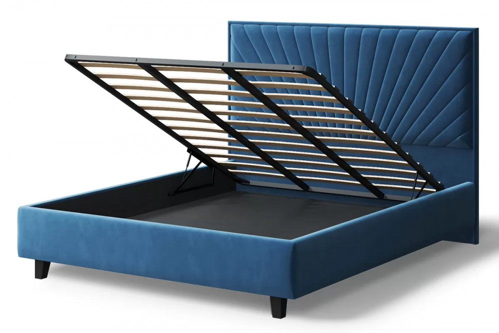 Материал ножек, опоры: Массив Высота, мм: 1165 Ширина, мм: 1725 Длина, мм: 2140 Вес, кг: 65.3 Цвет ножек: Черный Материал корпуса: ДСП, ДВП, массив березы, ткань Цвет корпуса: Синий Короб для белья: Нет Основание: Настил из латофлексов Подъемный механизм: Нет Спальное место, мм: 1600 / 2000 Цвет спинки: Синий