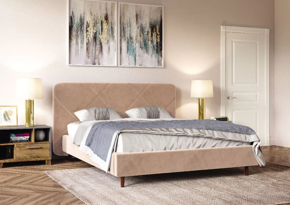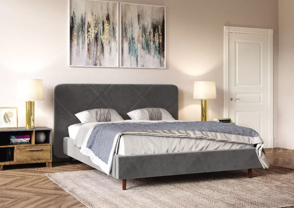 Кровати с мягким изголовьем - популярное решение для современных спален. Такая мебель выглядит более уютной, стильной, элегантной. Именно так можно охарактеризовать кровать Лиму. Она привлекает внимание своей простотой и из¬яществом - геометрические формы кровати не исключают легкости и красоты ее общего дизайна. Опоры из массива сосны - основное достоинство этой кровати, они придают ей прочность и долговечность. Благодаря этим опорам и подвесному бельевому ящику кровать будто парит в воздухе. Эффектный акцент этой модели - мягкое изголовье, украшенное декоративной отстрочкой. Лаконичность этого рисунка идет только на пользу общему стилю кровати. Для модели выбраны приглушенные тона, которые хорошо впишутся в интерьер спальни.