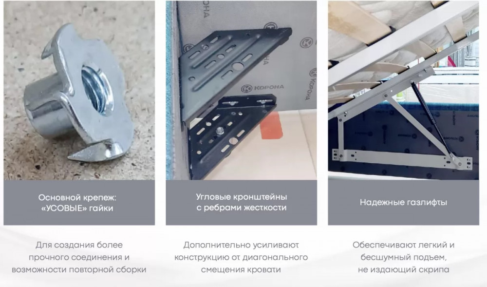 Эксклюзивная модель с мягким изголовьем, украшенным трендовым геометрическим дизайном. Такая модель на сегодняшний день пользуется большой популярностью у покупателей. Обладает всеми основными преимуществами, которые присутствуют у популярных моделей Marta и Jessica, т.е.: полный набор доступных опций, малый и большой ортопедический настил, сплошной настил из ЛДСП, комплектация подъемным механизмом.