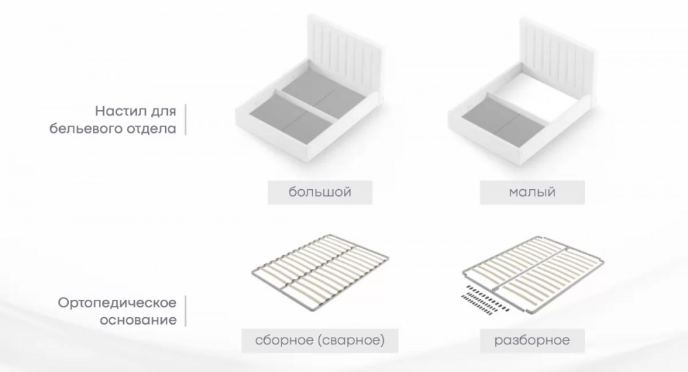 | Основание | Основание ортопедическое разборное, Настил напольный ЛДСП (большой), Настил напольный ЛДСП (малый), Основание ортопедическое сборное, Настил из ЛДСП |