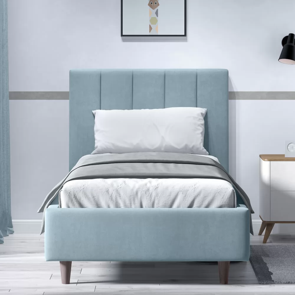 Интерьерная кровать на высоких ножках в современном стиле выглядит гармонично и привлекательно. Благодаря компактным размерам она отлично подходит для комнаты подростка или молодежной спальни.