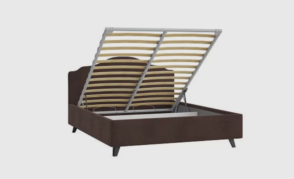 Элегантная кровать Адель имеет фигурное изголовье, комплектуется ортопедическим основанием "Профи" с подъёмным механизмом и коробом для белья.