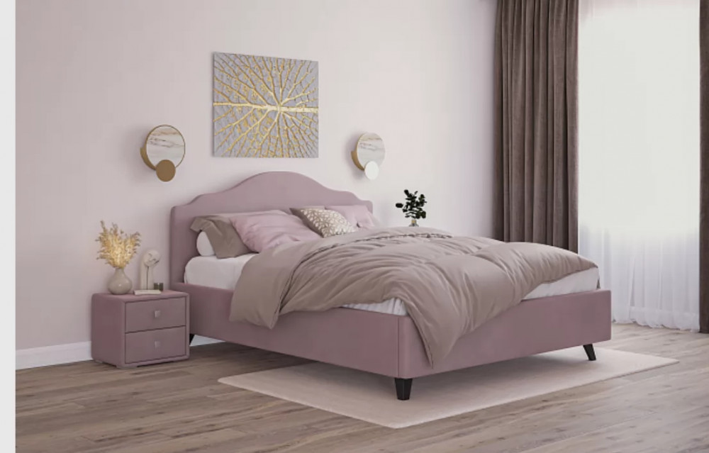 Элегантная кровать Адель имеет фигурное изголовье, комплектуется ортопедическим основанием "Профи" с подъёмным механизмом и коробом для белья.