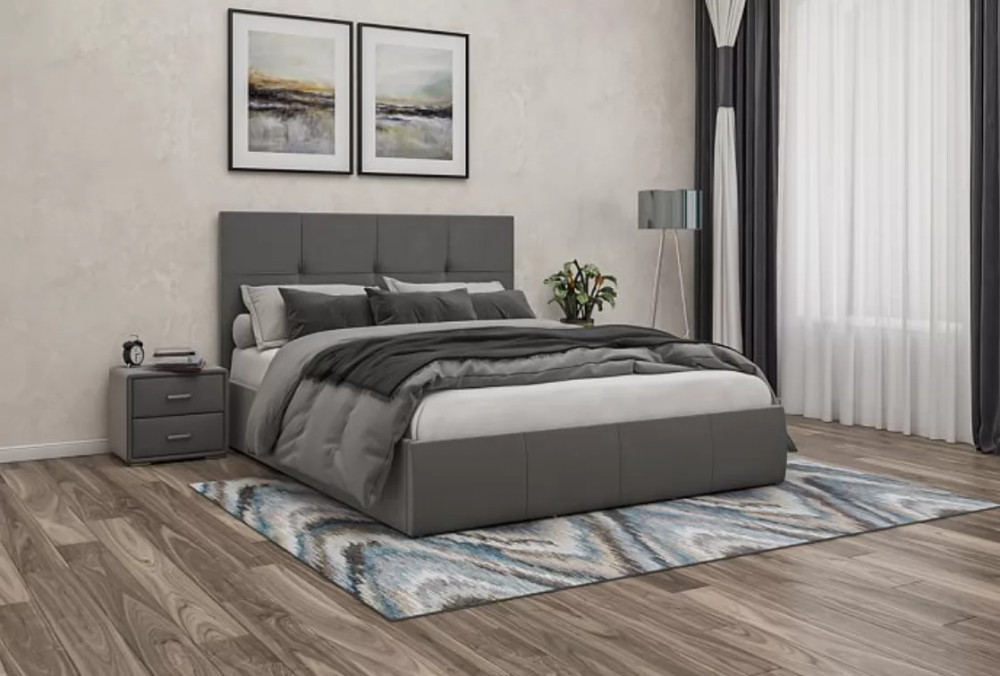 Кровать комплектуется ортопедическим основанием "Профи" с подъёмным механизмом и бельевым ящиком.