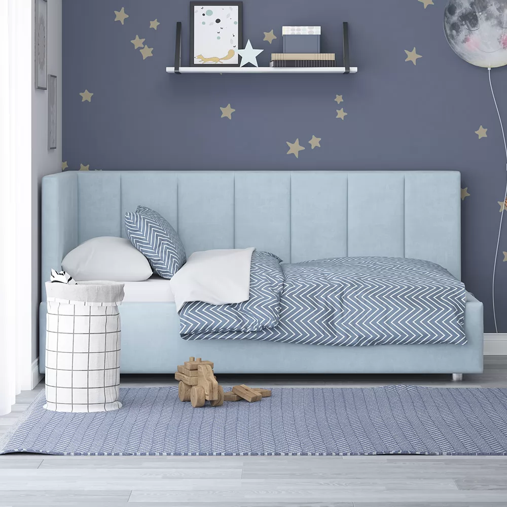 Кровать с универсальной малой спинкой, которую можно установить справа или слева.