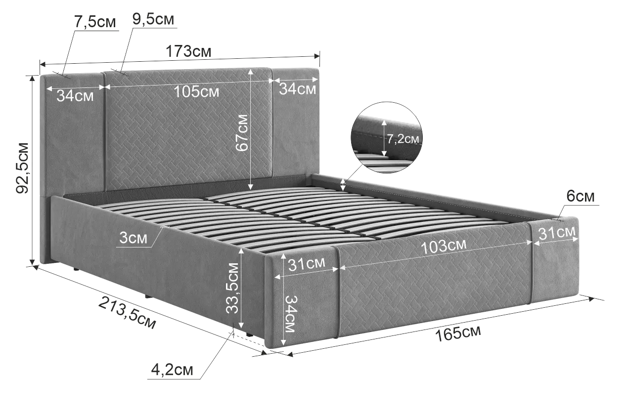 Рекомендованная высота матраса: 16 см
