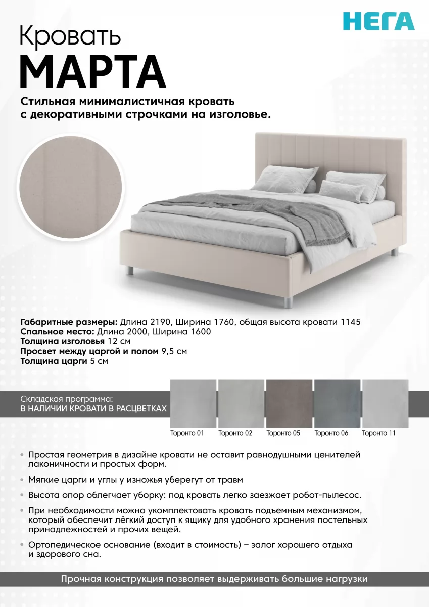 Кровать с подъемным механизмом Марта 1800*1900/2000 Торонто 11