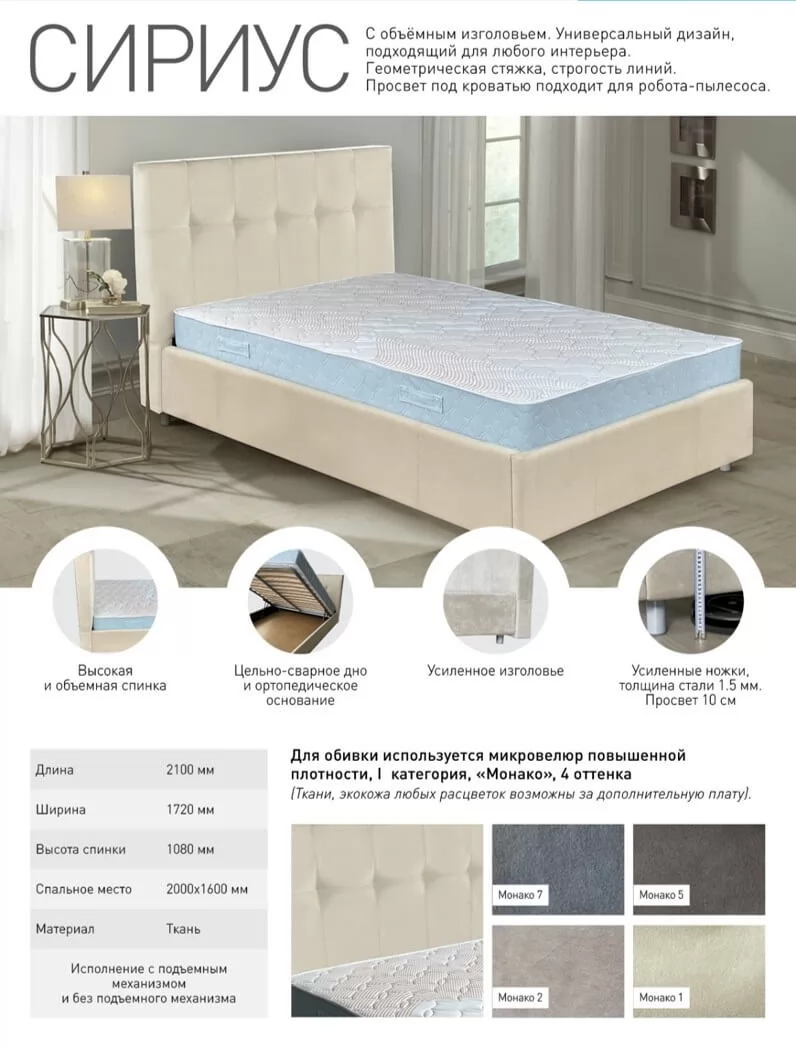 Кровать с подъемным механизмом Сириус Monaco 7 в Пыть-Яхе