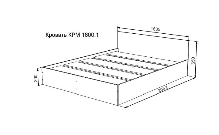 МОРИ КРМ1600.1/1 Кровать (сп/м 1600*2000мм), ЛДСП графит (МП/2) НАСТИЛЫ в Пыть-Яхе