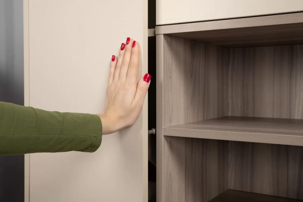 Фасады с механизмом push-to-open, направляющие скрытого монтажа, петли с доводчиками, утолщённая кромка – комфорт продуман до мелочей.