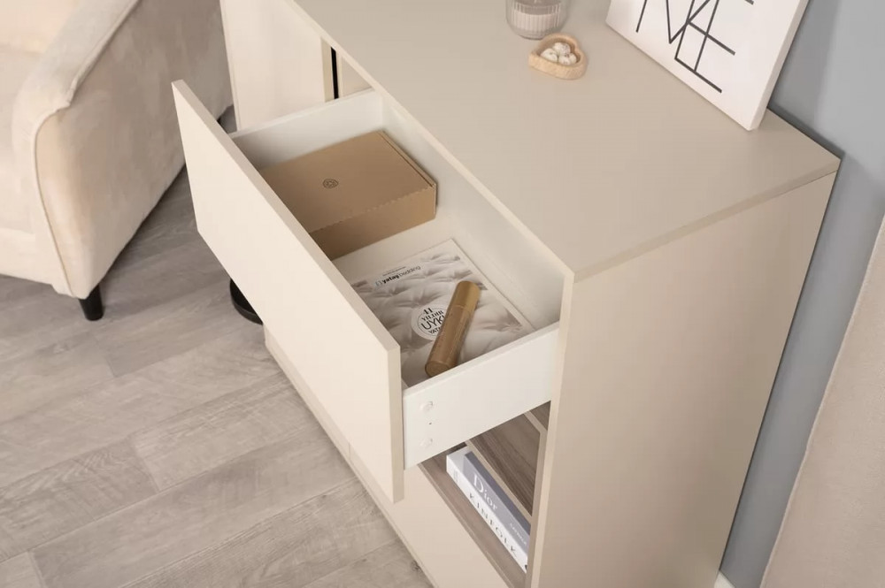 Благодаря нейтральному светлому оттенку и универсальности декора модули можно разместить в спальне, гостиной, прихожей.
