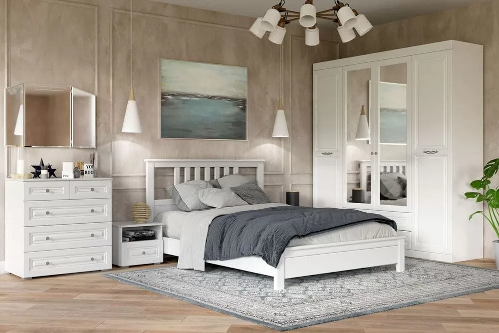 Геометричность гарнитура Олимп позволяет вписать его в любое помещение, а белые оттенки сделают комнату просторной и светлой. Идеально для тех, кто любит классические линии, уникальные текстуры, простоту и изящество.