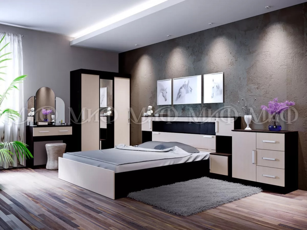 Спальный гарнитур Басямиф, дуб беленый/венге в Пыть-Яхе