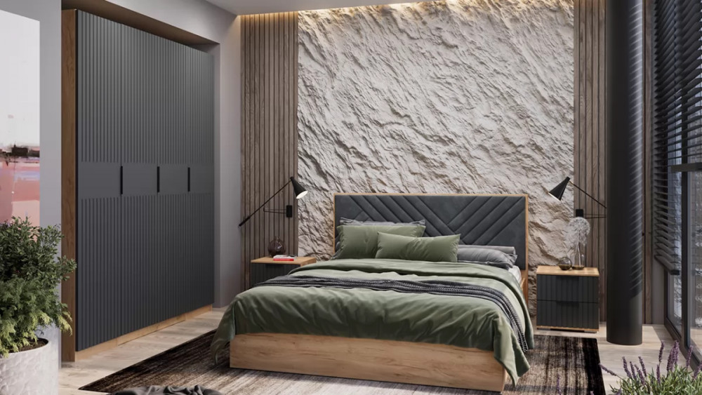 Спальный гарнитур «Хилтон» №2 Дуб Крафт золотой, Графит матовый в Пыть-Яхе