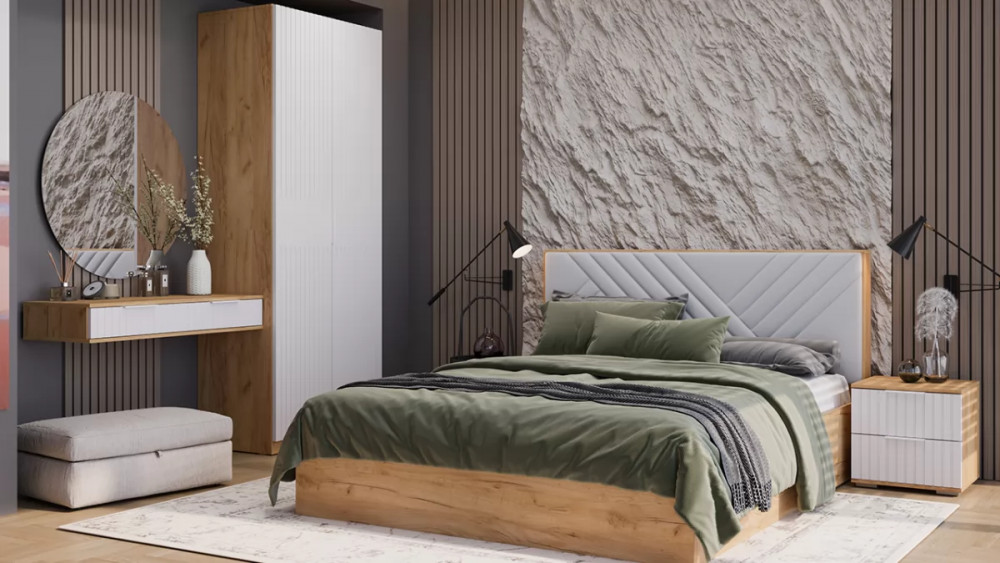 Спальное место - длина: 2 000 Назначение: Мебель для хранения Гарантийный срок: 18 месяцев Комната использования: Спальня Материал кромки каркаса: ПВХ Стиль: Современный Тип: Спальный гарнитур Расположение: Напольный Тип направляющих ящиков: Шариковые Материал каркаса: ЛДСП Спальное место - ширина: 1 600 Материал ручек: Металл Производство: Россия Габаритная высота: 2 260 Модель: Хилтон (спальня) Срок службы: 5 лет Материал фасада: МДФ, пленка ПВХ Оттенок: Коричневый, Белый Цвет: Дуб Крафт золотой, Белый матовый Цвет каркаса: Дуб Крафт золотой Цвет фасада: Белый матовый Оттенок каркаса: Коричневый Оттенок фасада: Белый Наличие механизма раскладки: Нет Наличие спального места: Нет